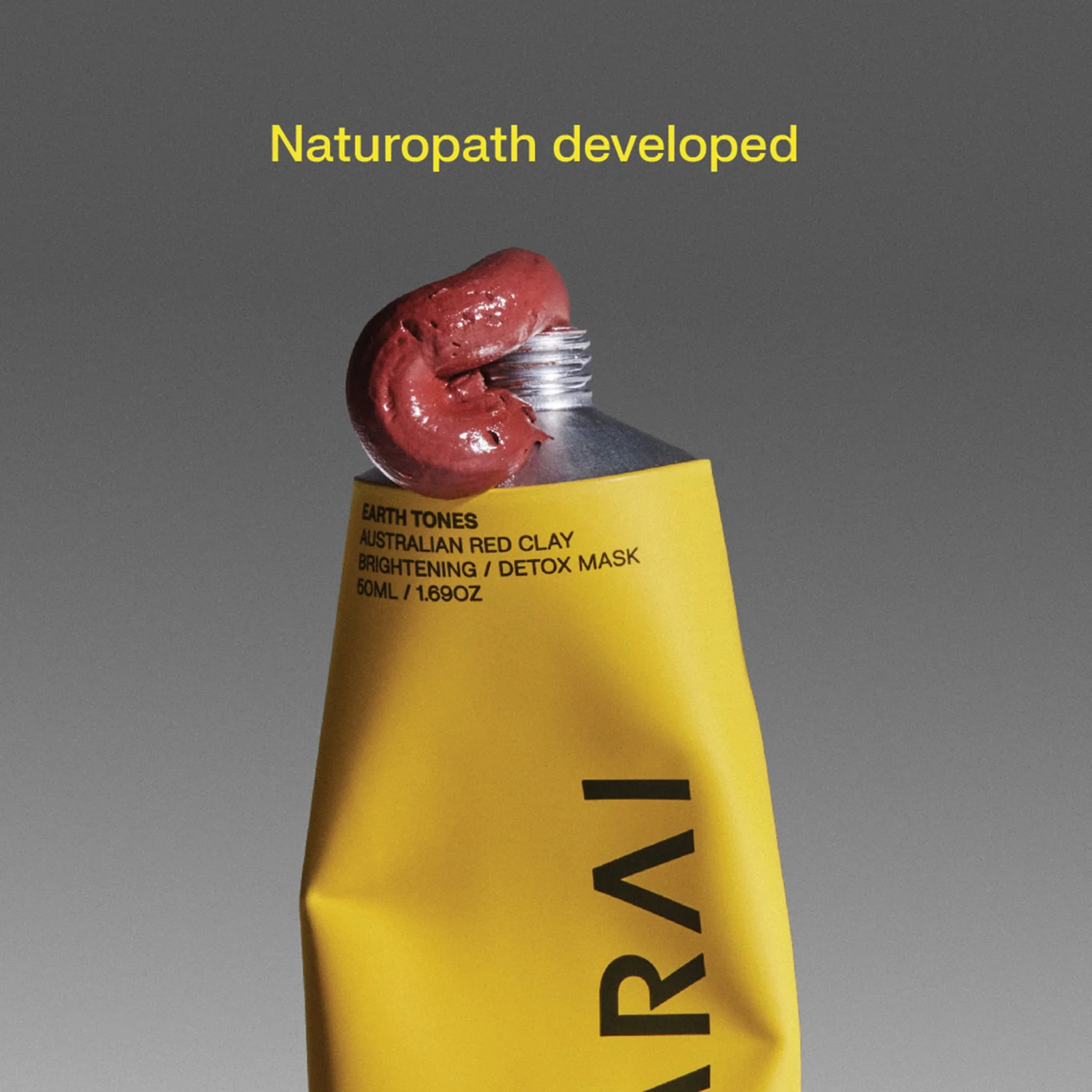 Earth Tones by Asarai is a red Australian clay mask designed to brighten, detoxify, and even out skin tone in just about 10-15 minutes. Formulated by naturopaths for all skin types, it combines red and white clays with native Australian botanicals (like Kakadu Plum & Limes) to deliver radiant, clearer-looking skin.